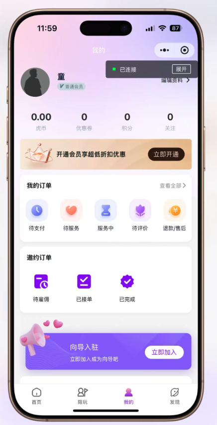 一键切换向导端: 用户账号可无缝切换为“向导”身份,接单提供服务,设计巧妙。